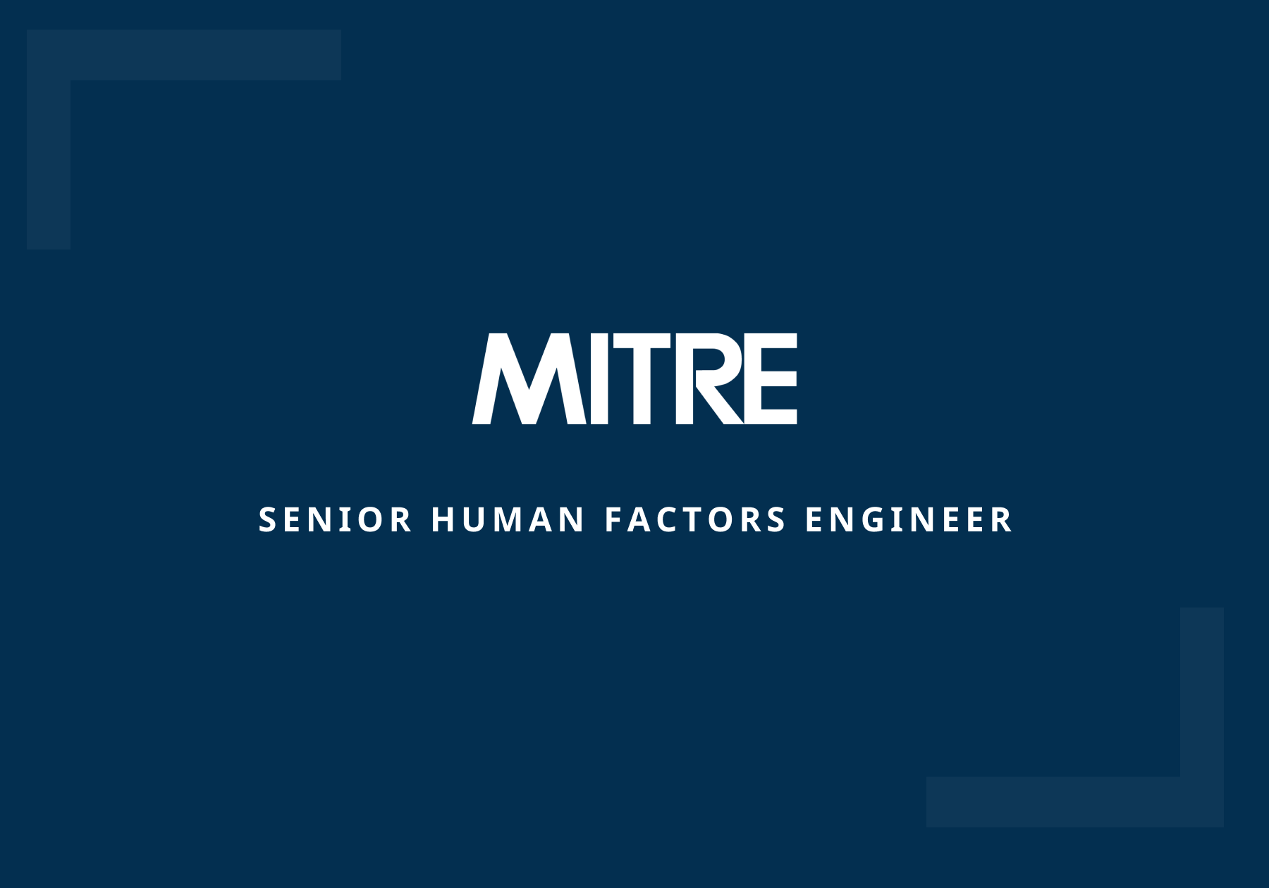 Senior Human Factors Engineer for the MITRE Corporation, optimizing systems for government and academic partners.