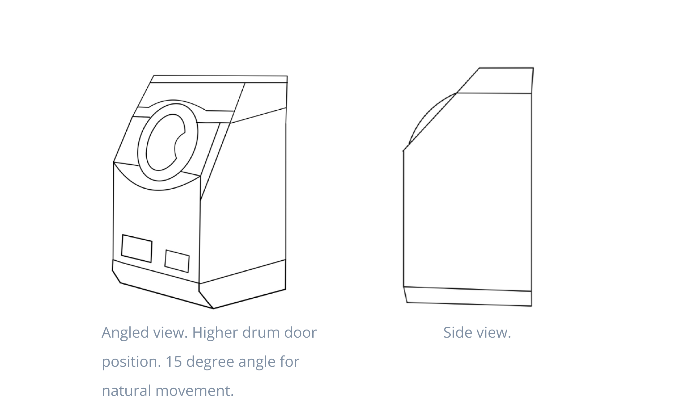 Our design also includes an alteration in the drum door angle, placing it at an angle of 15˚, an angle that is more natural and fluid for transferring loads of laundry.